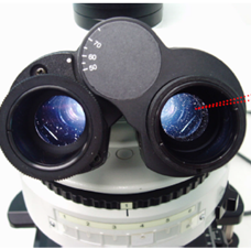 如圖1,當(dāng)顯微鏡光源開啟時,將高倍物鏡轉(zhuǎn)入光路,將聚光鏡的孔徑光覽關(guān)小,通過目鏡觀察(如上圖2),光路中的臟物將出現(xiàn)。這些贓物可能存在于以下光學(xué)部件,目鏡、物鏡、觀察筒、或者一些中間光學(xué)組件中。我們可以單獨旋轉(zhuǎn)目鏡或者物鏡來判斷臟物,當(dāng)單獨旋轉(zhuǎn)目鏡或者物鏡時,臟物轉(zhuǎn)動,那么臟物是在目鏡或者物鏡上,此時我們可以進(jìn)一步拆卸目鏡和物鏡進(jìn)行檢查并清除。如果轉(zhuǎn)動目鏡和物鏡時,臟物不動,那么臟物可能在觀察筒和中間光學(xué)組件中,此時我們可以轉(zhuǎn)動觀察筒來判斷,同樣我們也能找出贓物所在并清除。