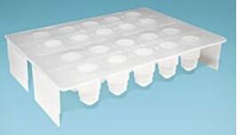 聚乙烯材料,薄的透視的尖端便于樣本包埋時快速的定向;樣本包埋塊可以用拇指輕輕向上頂出;20個管子各自獨(dú)立,允許空氣自由流動(不會局部聚集溫度),聚合條件統(tǒng)一;模具設(shè)計(jì)嚴(yán)密,適合厭氧包埋樹脂的使用,一個支架疊放在另一個有包埋樹脂的支架上方就可以隔絕空氣;模具也可以用來存儲樹脂切片。