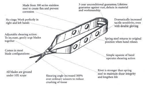 來自laschal的剪刀,其制造技術(shù)有了革命性的突破。獨(dú)特的設(shè)計使得你的使用不用區(qū)分左右手;高于普通剪刀3倍的剪切角度降低組織損傷度;刀刃使用不會變得松弛;便于拿取,無柄環(huán)狀結(jié)構(gòu);高品質(zhì),低價位;防腐蝕,防斷裂。