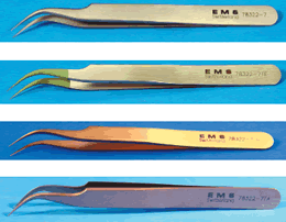 EMS鑷子進入中國市場十年來,逐漸得到了實驗室科研工作者的接納和認可,并獲得了不少贊譽。EMS 鑷子瑞士制造,材料選擇無磁性、抗酸蝕不銹鋼(特別材質(zhì)除外),防炫目的緞面設計,高品質(zhì)和革新是EMS鑷子的一直追求!對于電鏡工作者,EMS公司特別推薦style 3,style 3c,style 4,style 5,style 51s,style 5b,均可以用于電鏡微柵的精確取放。