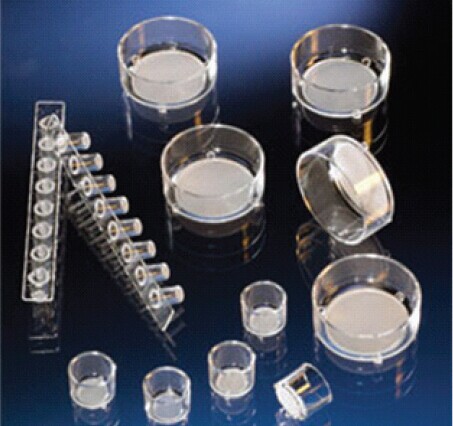 又稱細(xì)胞培養(yǎng)小室,簡稱CCI或者CC Inserts,便于大部分沒有基質(zhì)包裹的細(xì)胞培養(yǎng)使用。CCI主要配套NUNC公司的細(xì)胞培養(yǎng)板使用。細(xì)胞接種到小室底部的膜上后,套入培養(yǎng)板的孔,浸入培養(yǎng)基培養(yǎng)。我們提供的聚碳酸脂膜(polycarbonate),它們均具有良好的細(xì)胞附著和生長特性,極大的提高了細(xì)胞的分化水平。
