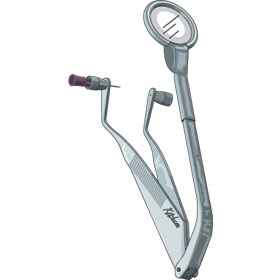 動物識別系統(tǒng)中常常用到耳標,通常的耳標使用受到多重限制:標識的個數(shù)、動物的大小、意外脫落等等。這里介紹一套快速有效的可長久標識實驗動物的工具—紋標工具。實驗大鼠和小鼠,不受月齡限制(1天的小鼠即可標識)。不銹鋼鑷樣工具的一端是穿刺針頭,工具的另一端是盛有綠色紋標色膠的小金屬容器。工具的上方帶有一放大鏡,便于實驗工作者準確干凈的灌注綠色紋標色膠。