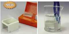 包括Wash-N-Dry蓋玻片架和Wash-N-Dry載玻片架,均可以高壓滅菌,可以透明、處理、染色、干燥一口氣完成。國際實驗室最新流行款式,一般用燒杯來盛放染液或者洗液,再將架子浸入其中。蓋玻片架至多可以放置10片蓋片,最奇妙的是蓋片的大小不受制約,18mm,22mm,25mm,均可以從容放置。載玻片架可以放置12個標(biāo)準(zhǔn)載玻片。