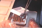 2 用Quick-Ray取樣器取出組織柱,放入預(yù)鑄蠟塊recipient block