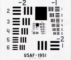 美國空軍1951年分辨力測試圖一直是世界上檢測垂直與水平分辨力的通用標準,是符合MIL-STD-150A標準的分辨力測試圖案,由美國空軍于1951年創(chuàng)建。1951 USAF分辨力測試圖目前仍廣泛地應用于測試光學成像系統(tǒng)(如顯微鏡和相機)的分辨能力。這種圖案包括幾組由三條短線構成組合,短線的尺寸從大到小。成像系統(tǒng)無法辯明的最大短線組為其分辨能力極限。