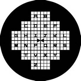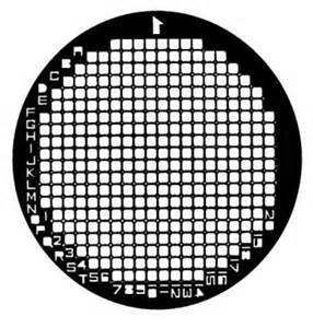 l 200目F2型坐標(biāo)載網(wǎng):粗的柵條分割出小的區(qū)域,每小區(qū)域內(nèi)是細(xì)柵條組成的9個孔,每一區(qū)域?qū)?yīng)一個字母編碼。