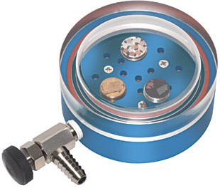 理想的運(yùn)輸或保存SEM、TEM、FIB、AFM樣本的微型干燥器,可以保存12個(gè)標(biāo)準(zhǔn)的ø 12.7mm樣本臺(tái)或者2個(gè)ø 25mm或1個(gè)ø 50mm的樣本臺(tái),樣本高度不能超過10mm,保存狀態(tài)為真空。底座材料為陽(yáng)極化處理過的鋁,蓋子為10mm厚度的透明工程塑料,便于觀察??傮w尺寸為ø76 x 35mm,美國(guó)制造。密封的O型圈可以適應(yīng)10-3 mbar的真空,且保持?jǐn)?shù)月之久。