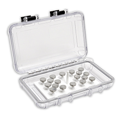 1.通用型儲(chǔ)存盒:盒子帶有內(nèi)襯和蓋子,可裝12個(gè)樣品臺(tái)(臺(tái)面直徑是10mm或者15mm的圓柱體;或者銷釘?shù)闹睆绞?span lang="EN-US">3.1mm的樣品臺(tái))。