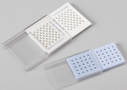 提供50孔和100孔兩種規(guī)格的樣本盒,用來存放3.05mm的TEM載網(wǎng)。每個儲格間進行數(shù)字/字母組合編碼,便于精確定位檢索樣本。每個儲格設(shè)計為菱形,可以很好的防止拿取時手的抖動對樣品造成損害,孔深可以很好的固定以防運輸或者顛倒時載網(wǎng)滑落。