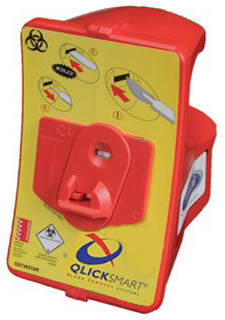 QLICKSMART手術(shù)刀片安全移除器是世界首創(chuàng)的單手移除手術(shù)刀片的工具,可以防止用手拿鑷子或者徒手取出刀片時(shí)所造成的意外傷害以及血源感染的風(fēng)險(xiǎn)。只需要將手術(shù)刀瓶送平推入移除器插入口,直到聽到“咔嗒” 一聲,刀片即自動(dòng)完成移除,這個(gè)移除器可以容納100片。